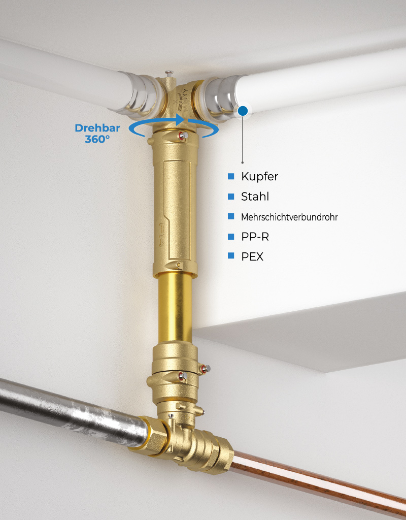 Dank der verfügbaren Fittings können auch Rohre mit unterschiedlichen Durchmessern und aus verschiedenen Materialien einfach und effizient verbunden werden.
