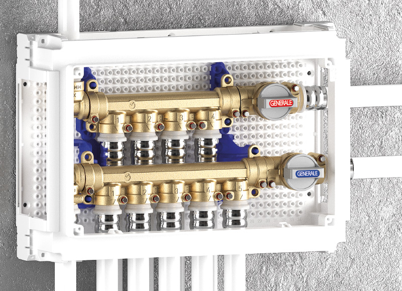 Una vasta selezione di moduli, collettori, valvole e raccordi permette di rispondere a molteplici esigenze impiantistiche, sia in nuove costruzioni sia in ristrutturazioni.